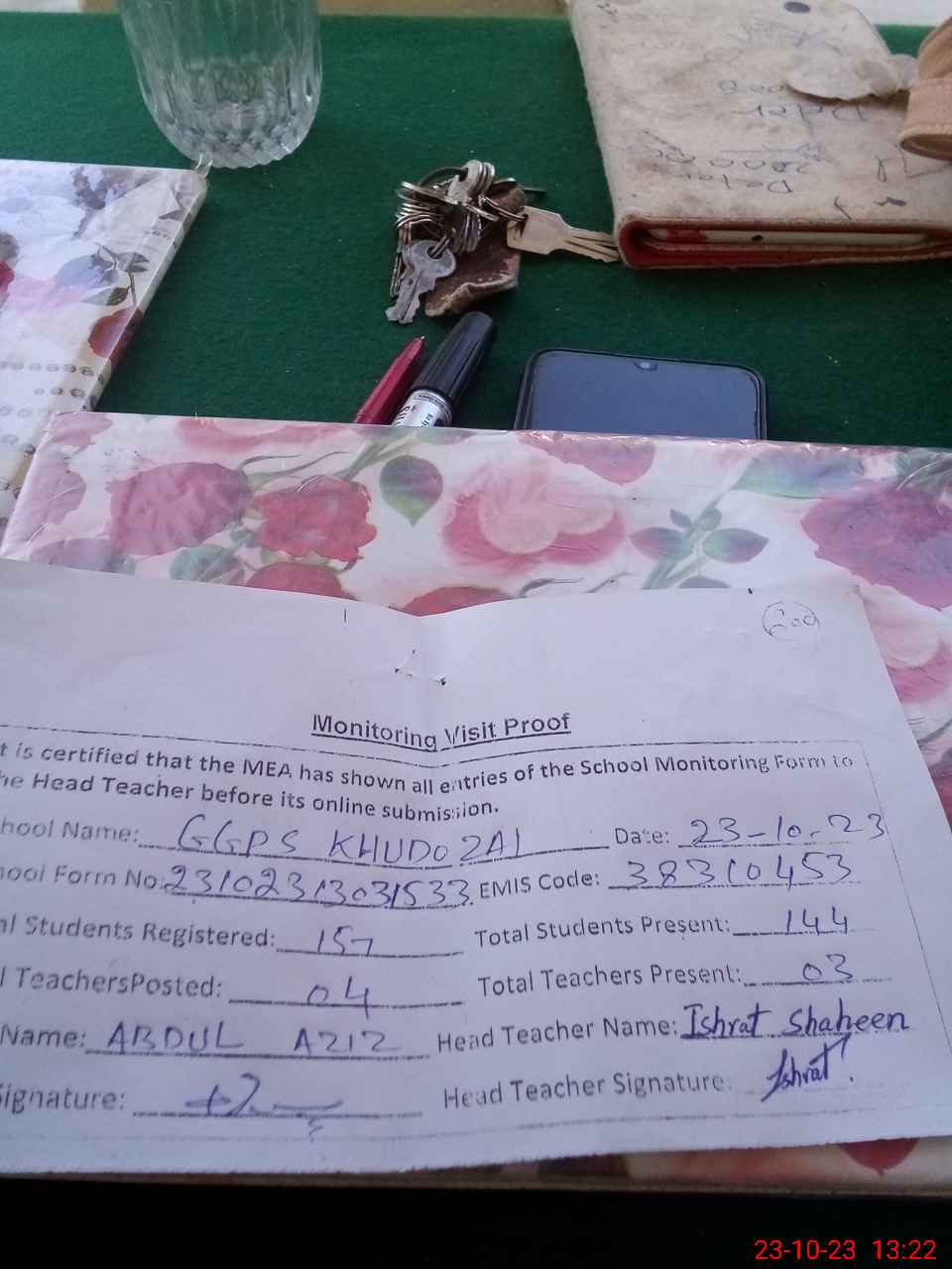 | EMIS Code: 38310453 | Name of School: GGPS KHUDZOI | |||
