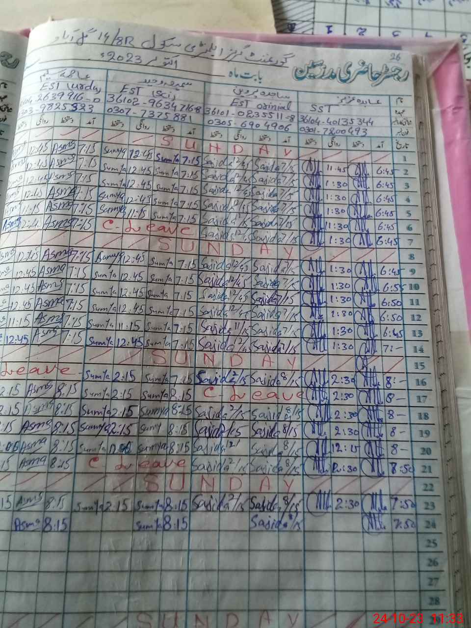 | Name: Ab**** Az**** Designation: (School Headmaster's/Headmistress's) SST Phone/Cell Number: 03**** |