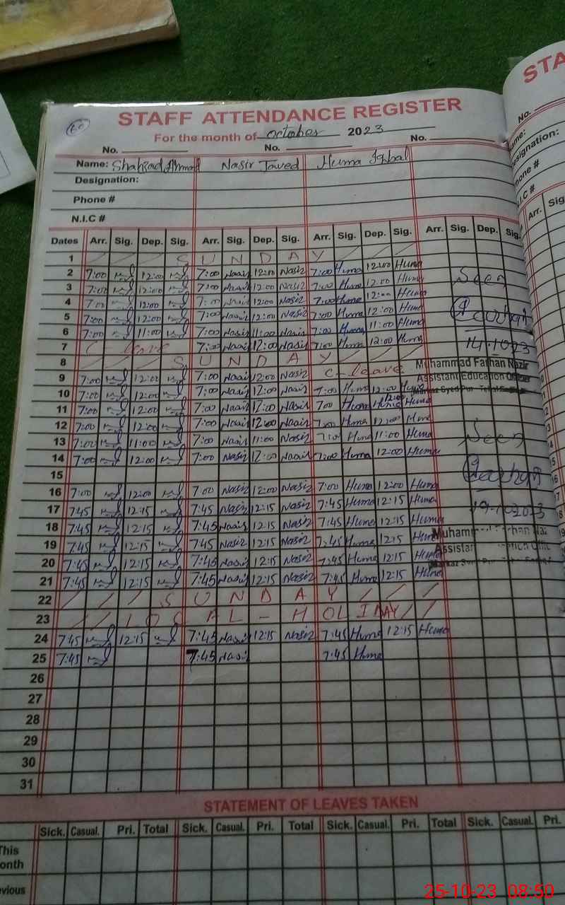 | Name: SH**** AH**** Designation: (School Headmaster's/Headmistress's) PST Phone/Cell Number: 03**** |