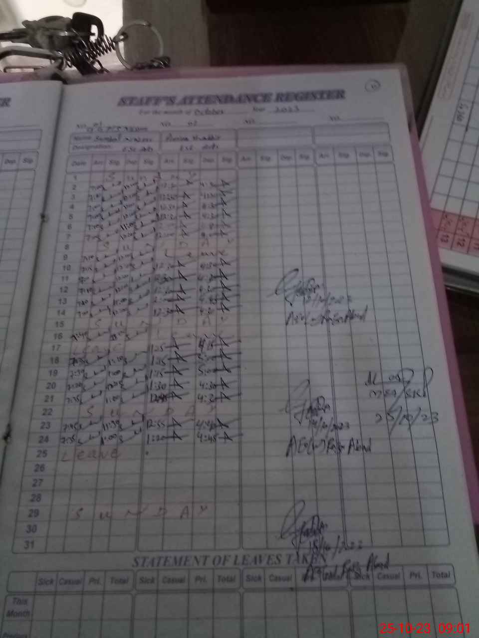 | 35**** | Su**** Na**** | 1 | 2 | 0 | 0 | 0 | 0 | 0 | 0 | 0 | 2 | Absent (Un-Authorized) | |