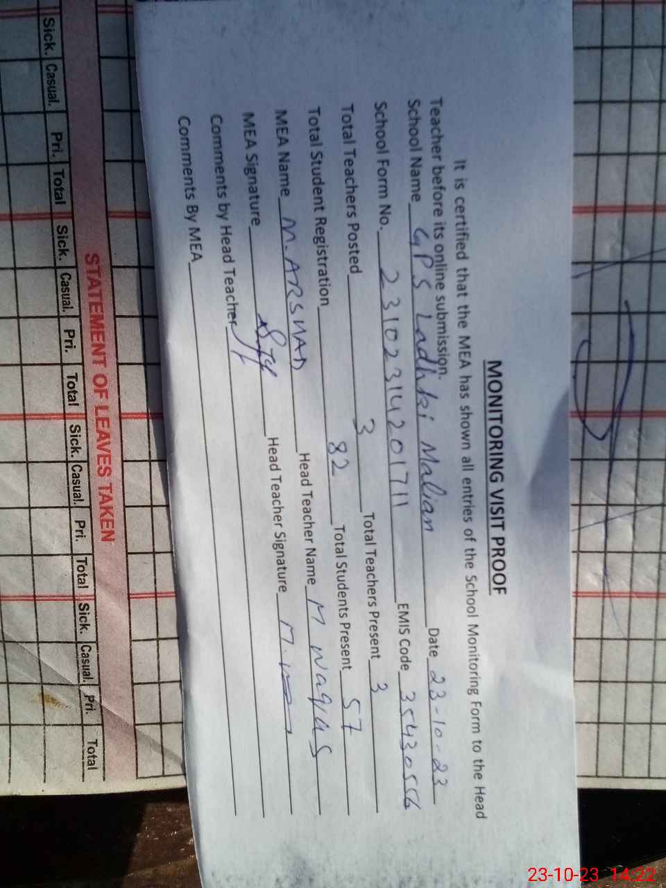 | EMIS Code: 35430556 | Name of School: GPS LADHKI MALLIAN | |||