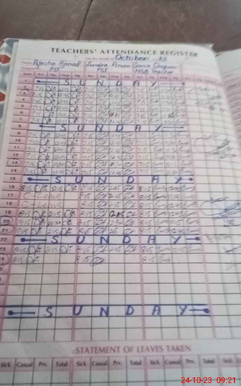 | Name: AY**** AJ**** Designation: (School Headmaster's/Headmistress's) PST Phone/Cell Number: 03**** |