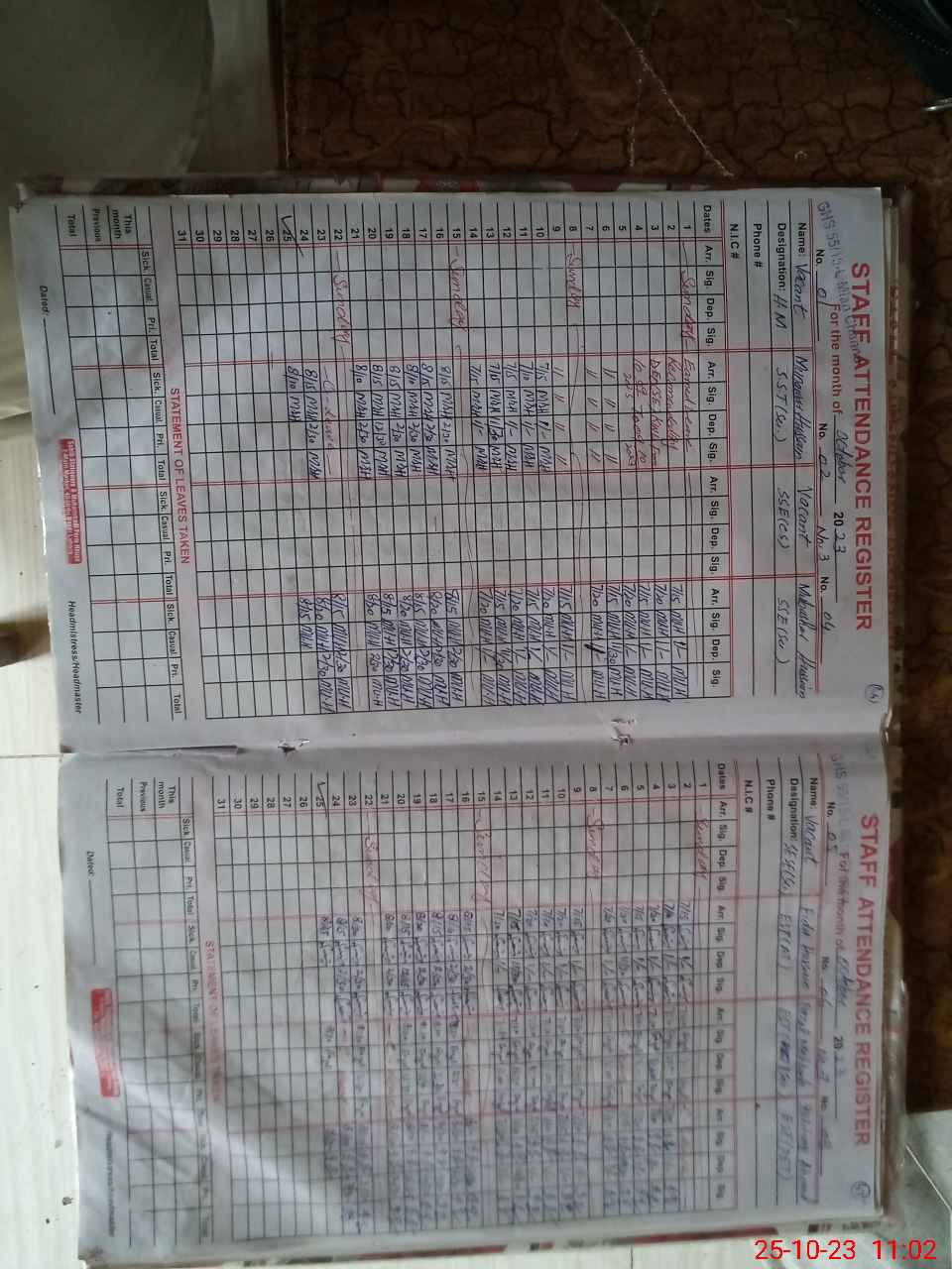| CNIC | Full Name | Designation | R/C | Absence During Last Calender Month |