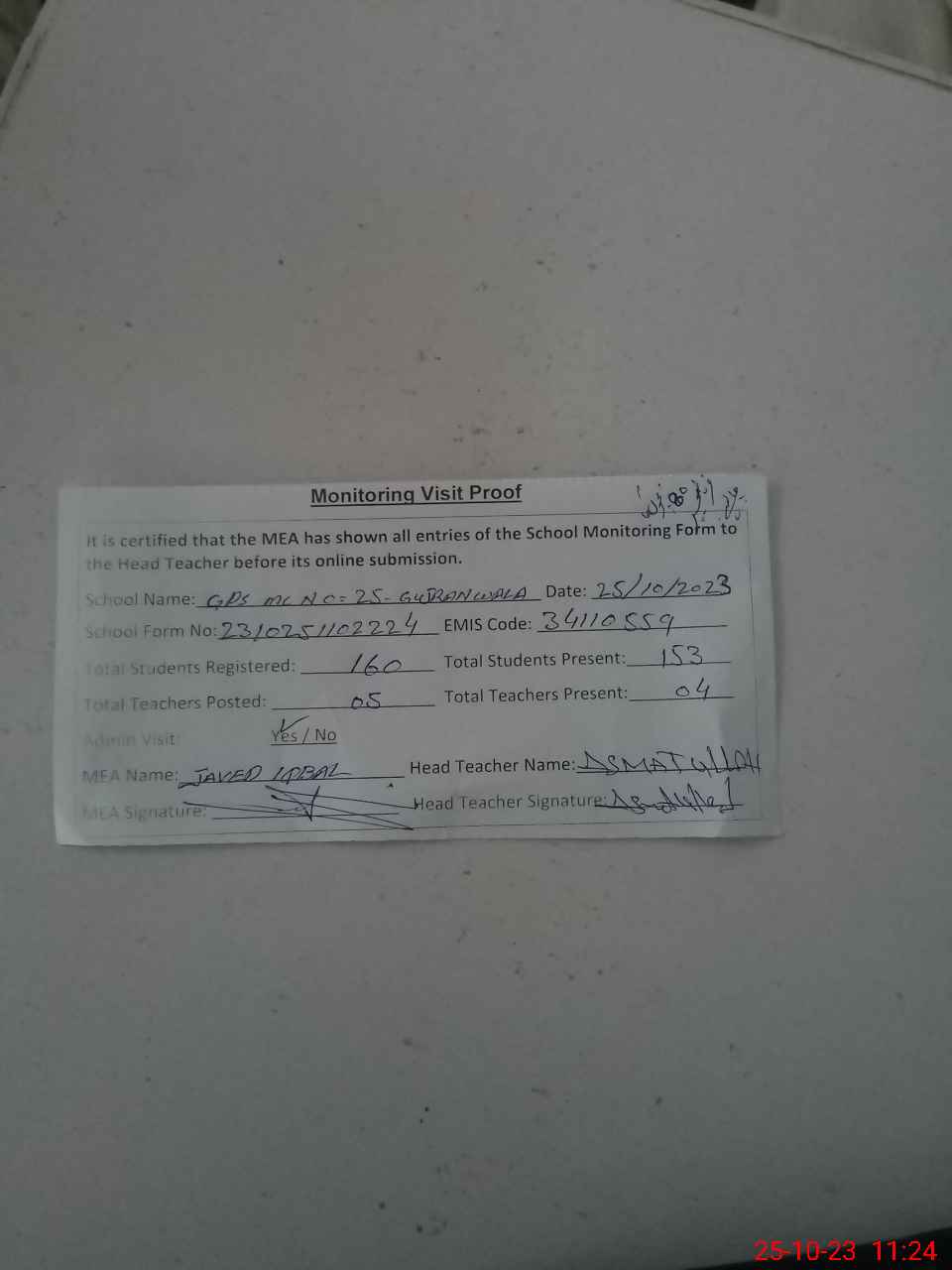 | EMIS Code: 34110559 | Name of School: GPS MC NO.25 | |||