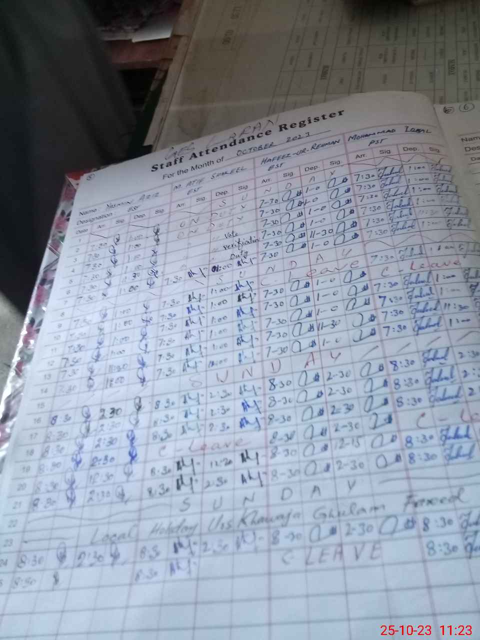 | CNIC | Full Name | Designation | R/C | Absence during last cal. month |