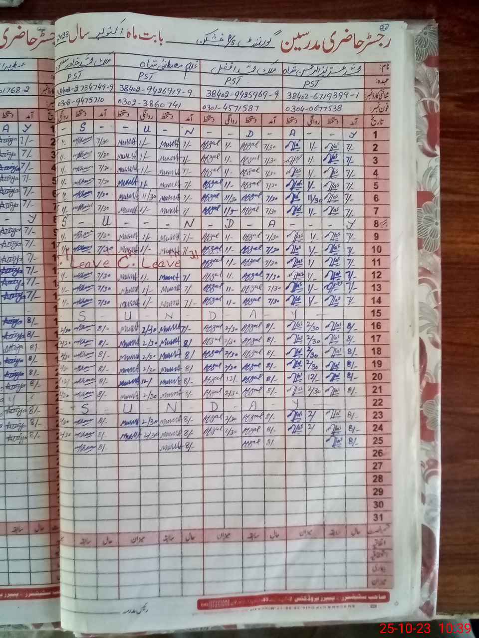 | Name: MU**** AZ**** URRE**** Designation: (School Headmaster's/Headmistress's) ESE (SCI-MATH ) Phone/Cell Number: 03**** |