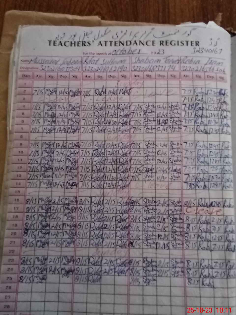 | CNIC | Full Name | Designation | R/C | Absence during last cal. month |