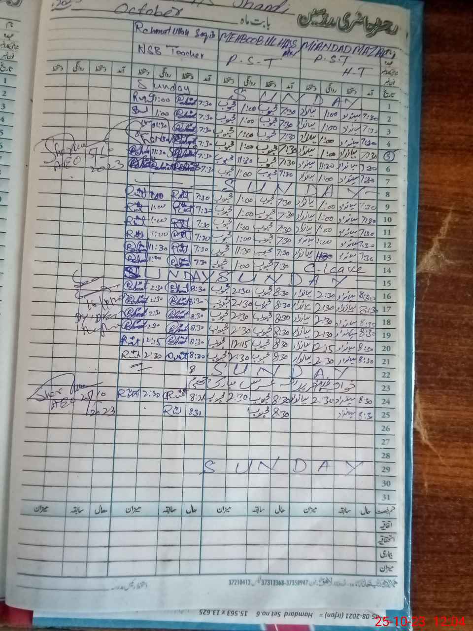 | CNIC | Full Name | Designation | R/C | Absence During Last Calender Month |