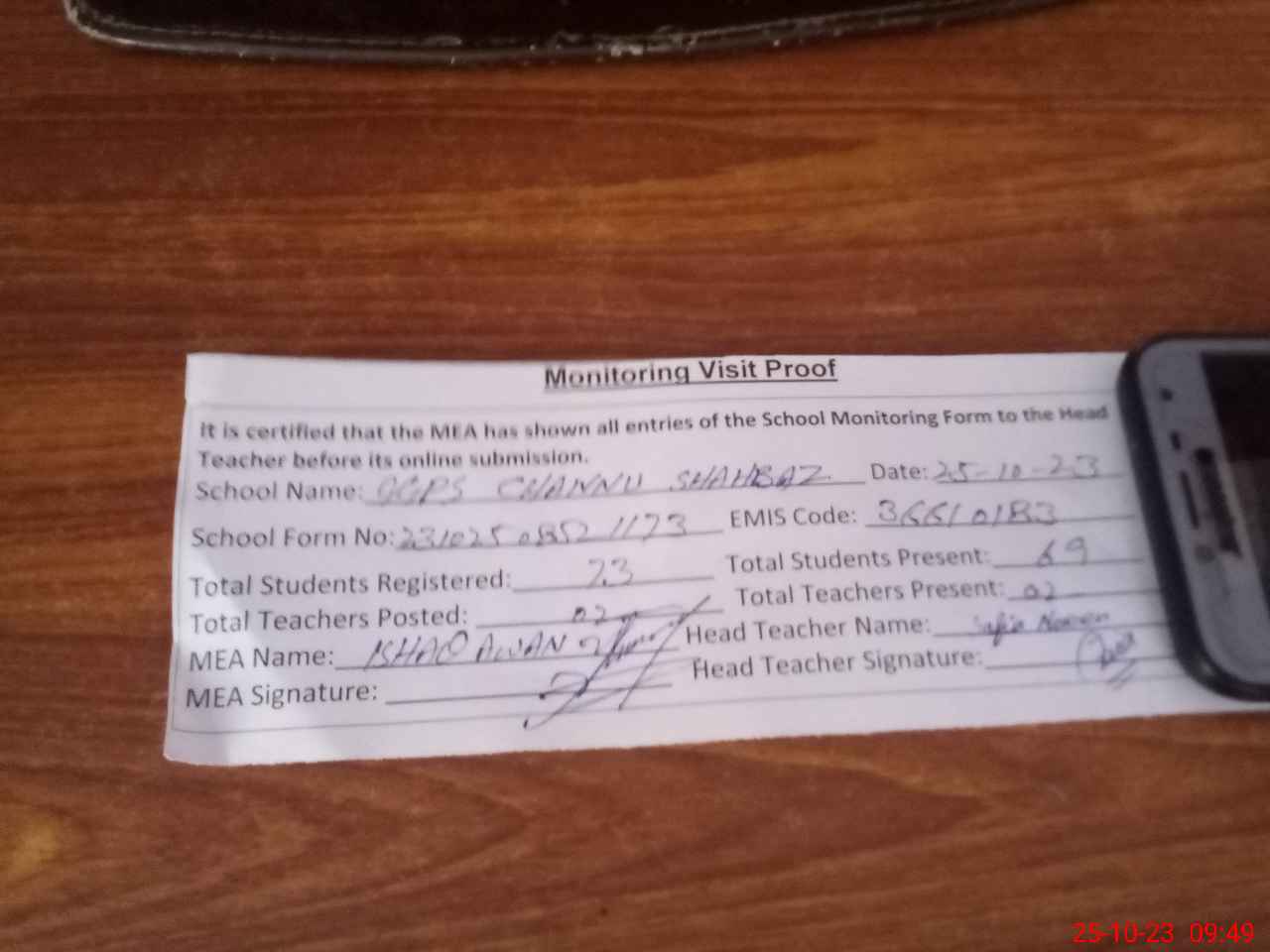 | EMIS Code: 36610183 | Name of School: GGPS CHANNU SHAHBAZ | |||