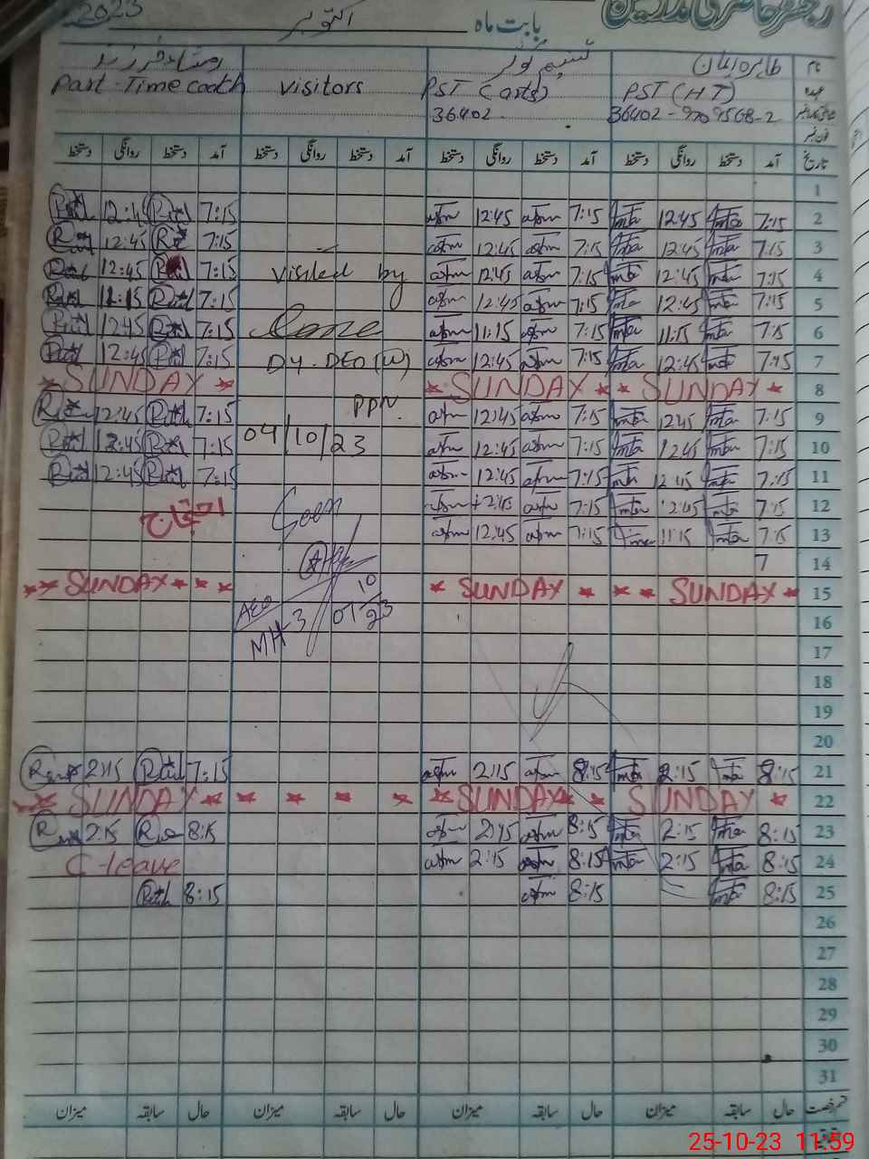 | CNIC | Full Name | Designation | R/C | Absence During Last Calender Month |
