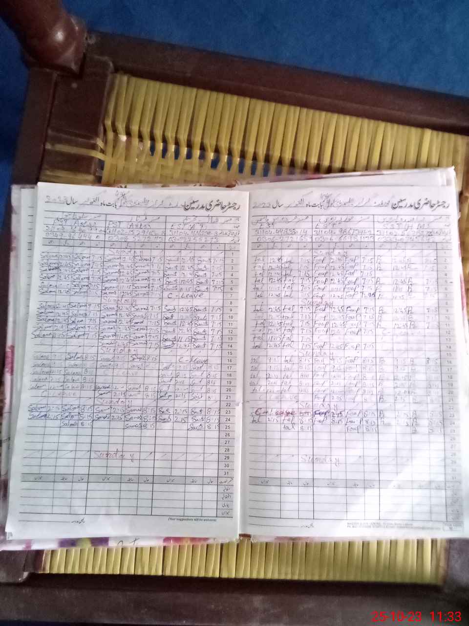 | CNIC | Full Name | Designation | R/C | Absence During Last Calender Month |