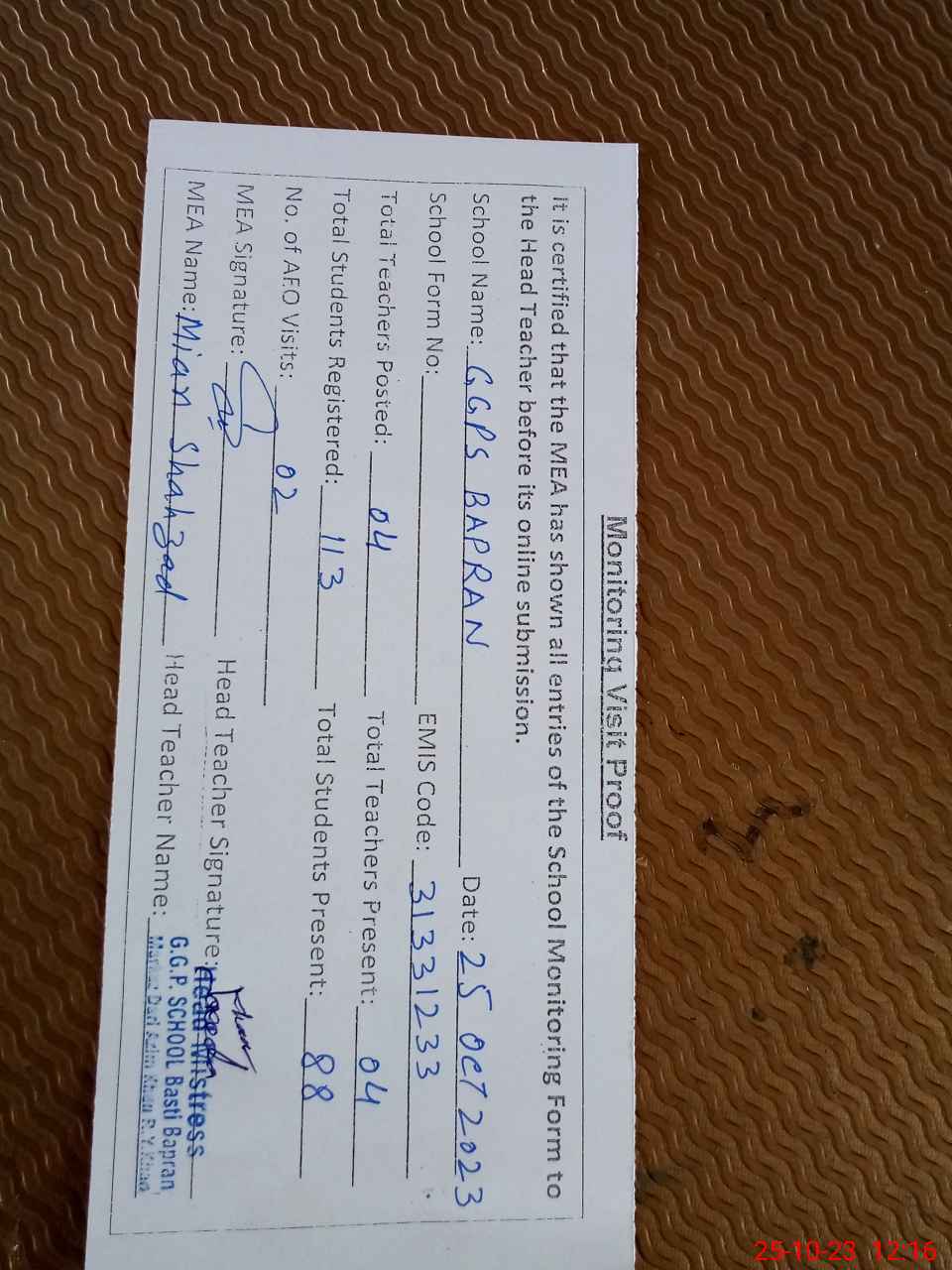 | EMIS Code: 31331233 | Name of School: GGPS BAPRAN | |||
