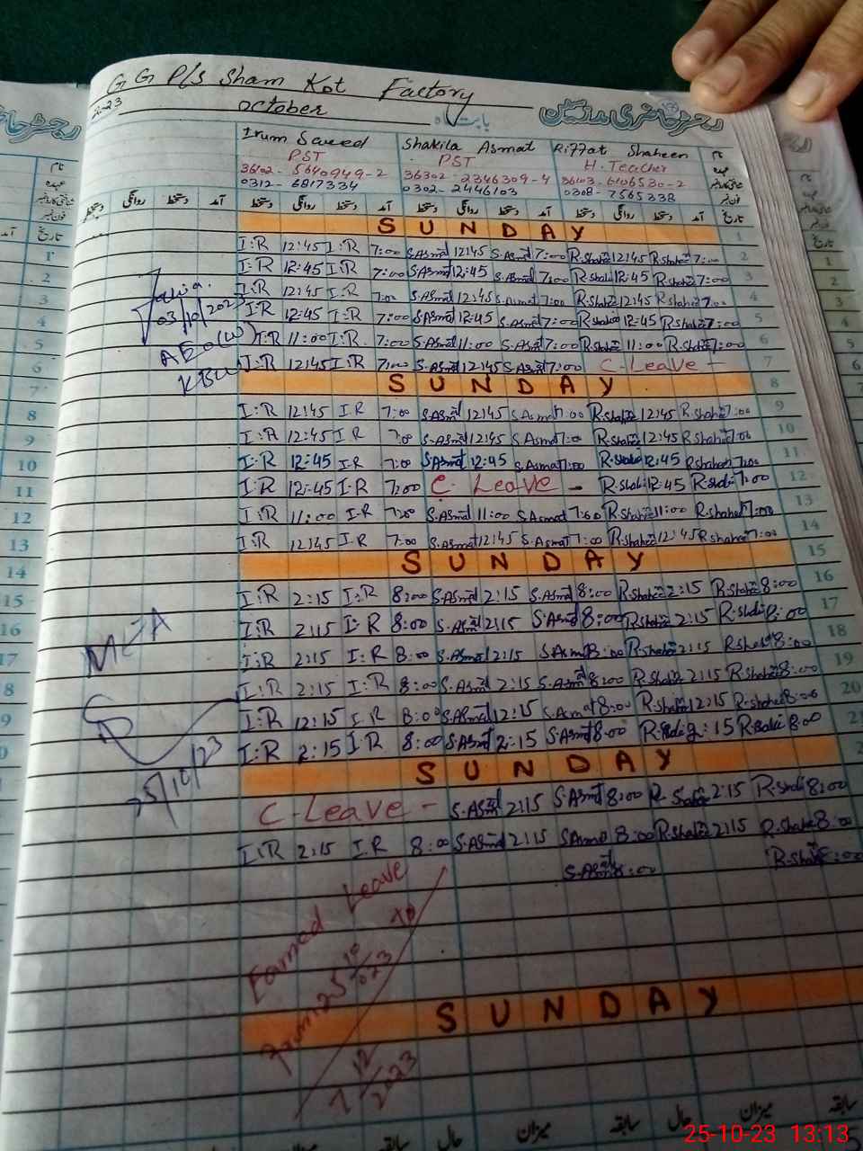 | Leave | Duty | Absent | Maternity | Medical | Ex- Pak |