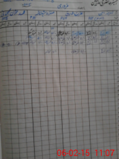 | CNIC | Full Name | Designation | R/C | Absence During Last Calender Month |