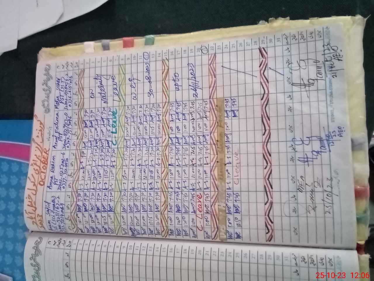 | Leave | Duty | Absent | Maternity | Medical | Ex- Pak |