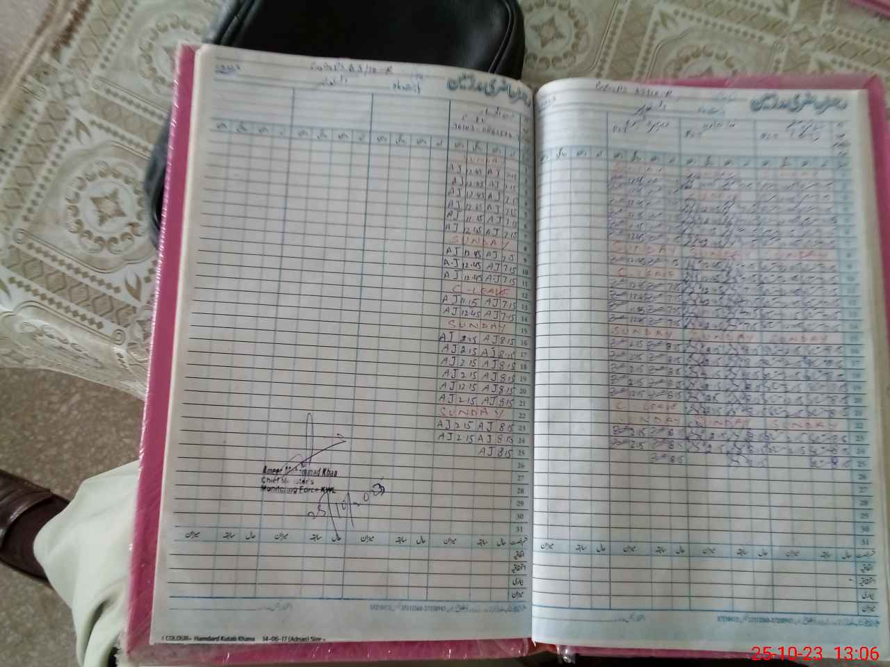| CNIC | Full Name | Designation | R/C | Absence during last cal. month |