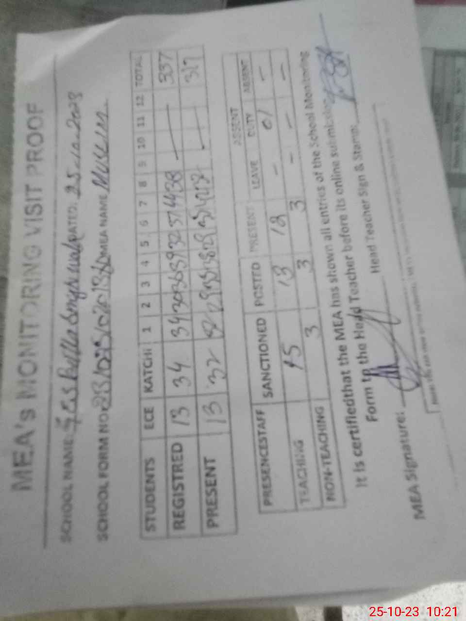 | Certified that this School was Inspected by the Undersigned MEA/DMO Today and the Information Stated Above is as Per Record. | |||||