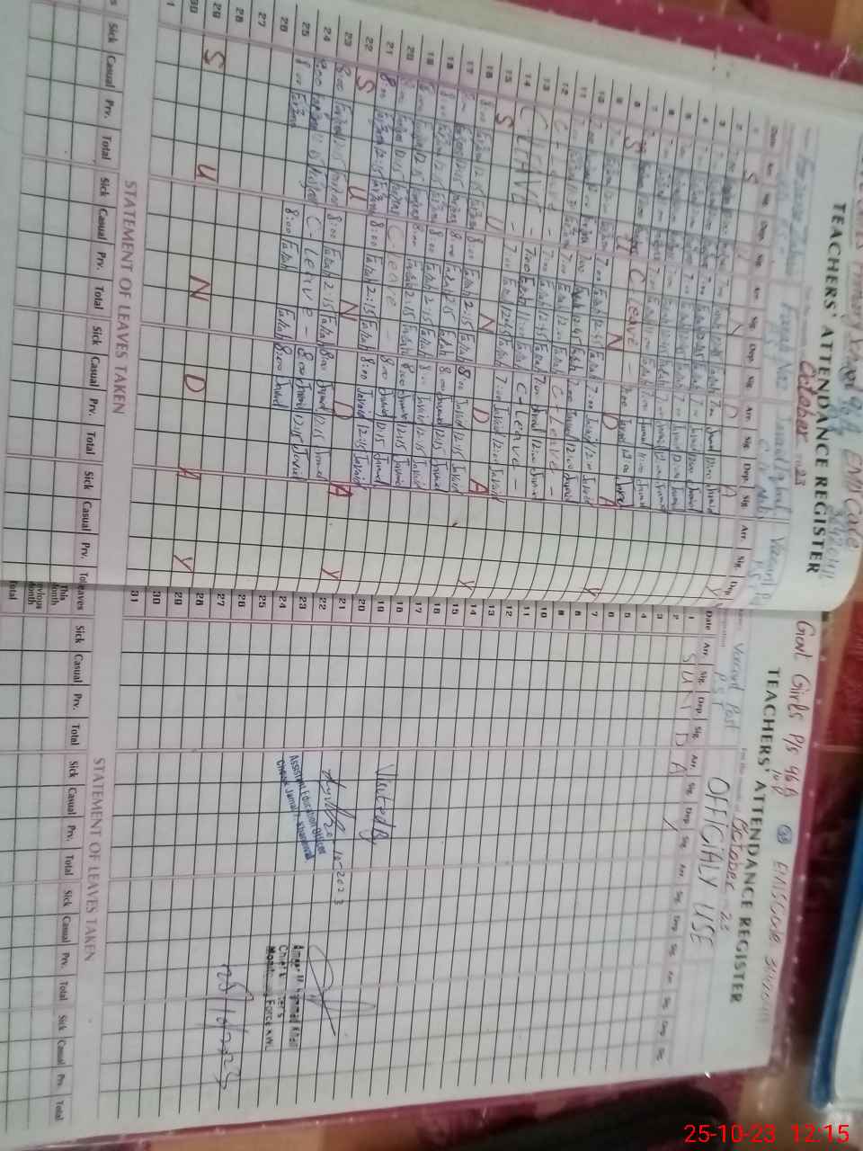 | No. of Students Present - Male | 0 | 0 | 0 | 0 | 0 | 0 | 0 | 0 | 0 | 0 | 0 | 0 | ||||