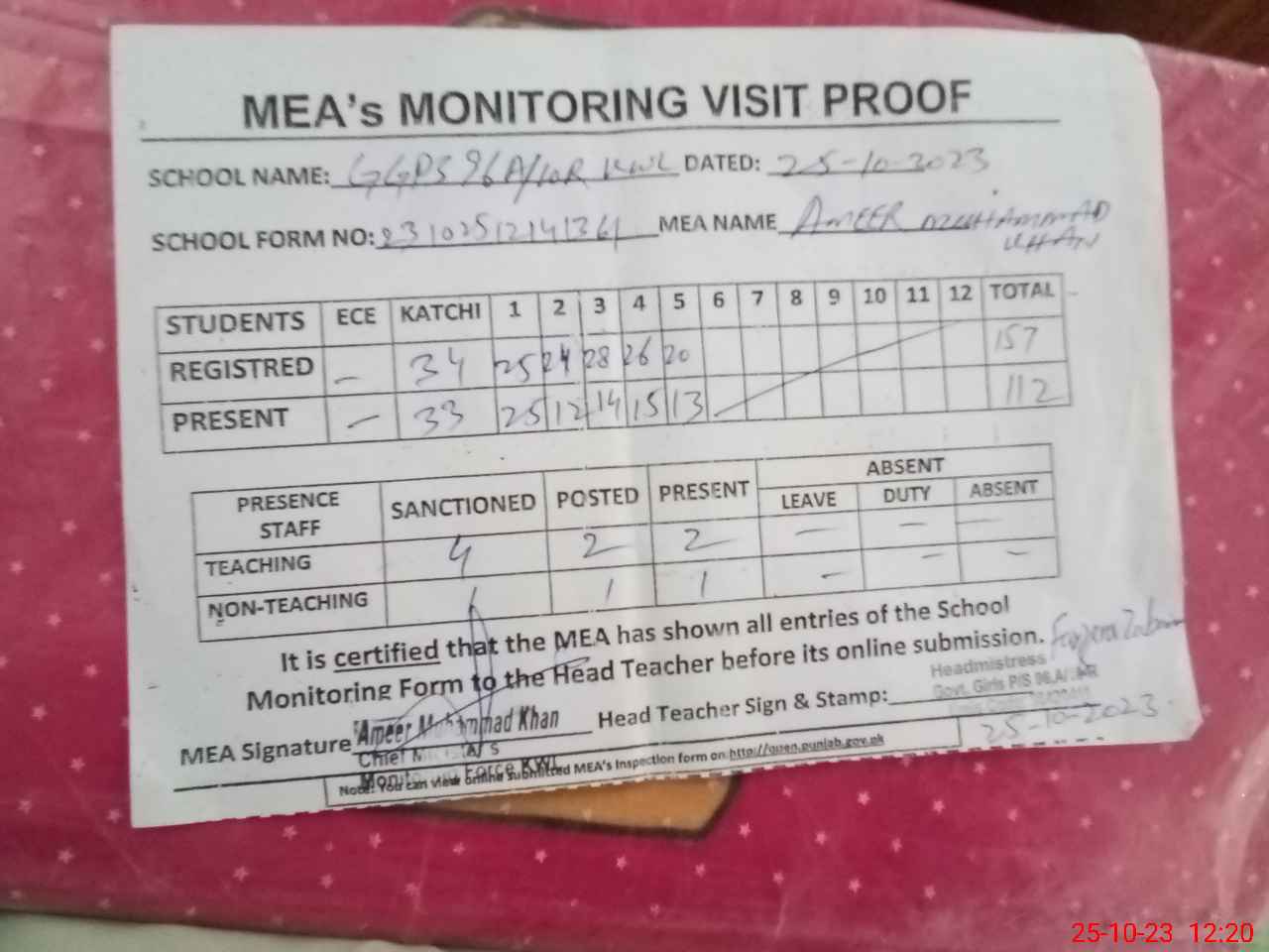 | EMIS Code: 36420411 | Name of School: GGPS 96-A/10-R, KHANEWAL | |||