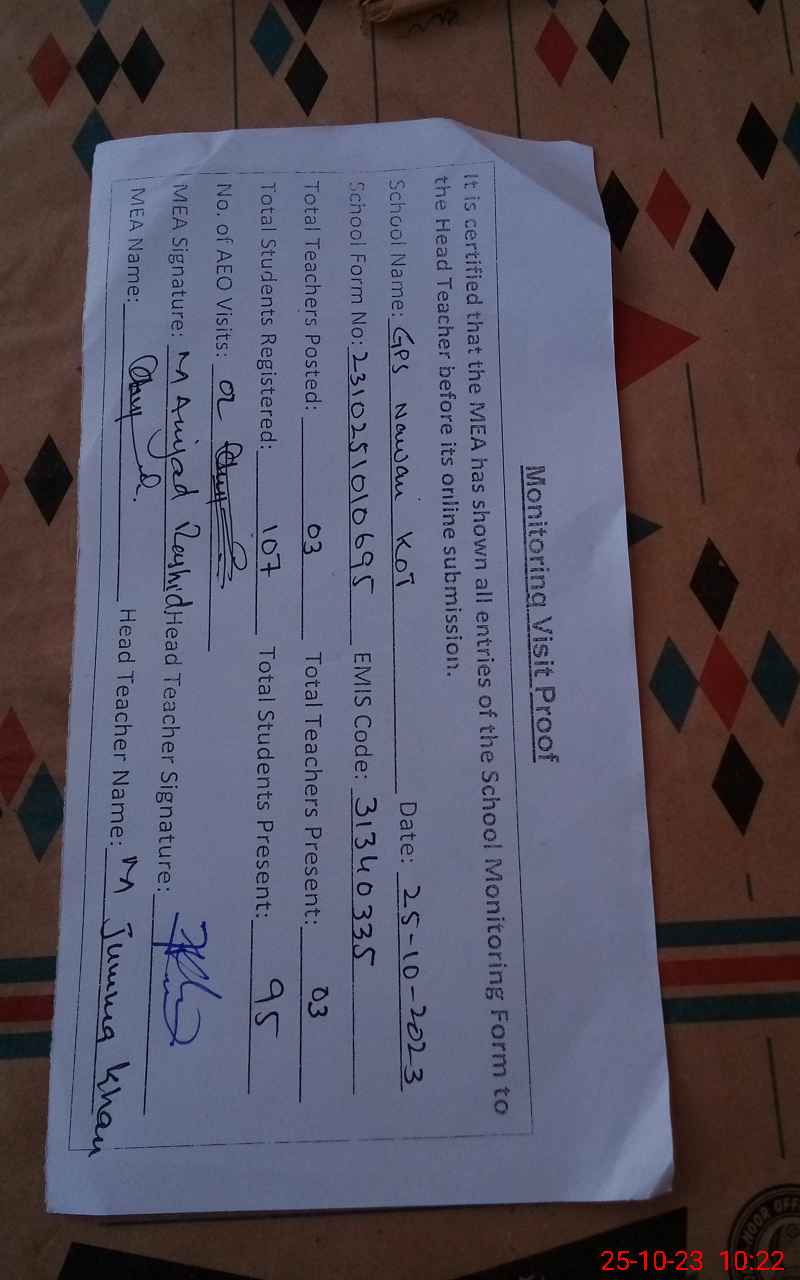 | EMIS Code: 31340335 | Name of School: GPS NAWAN KOT | |||