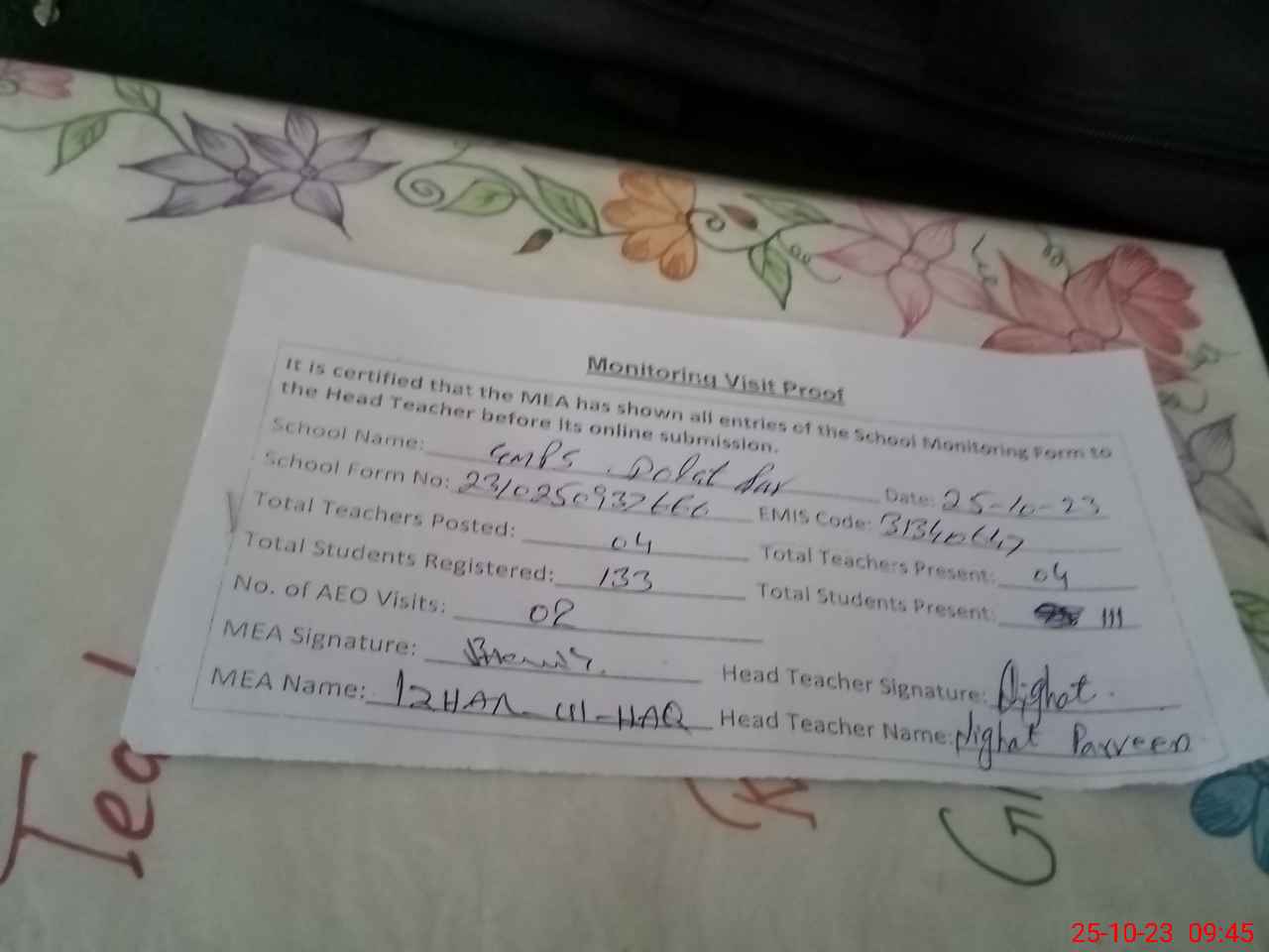 | EMIS Code: 31340647 | Name of School: GMPS DOLAT PUR | |||