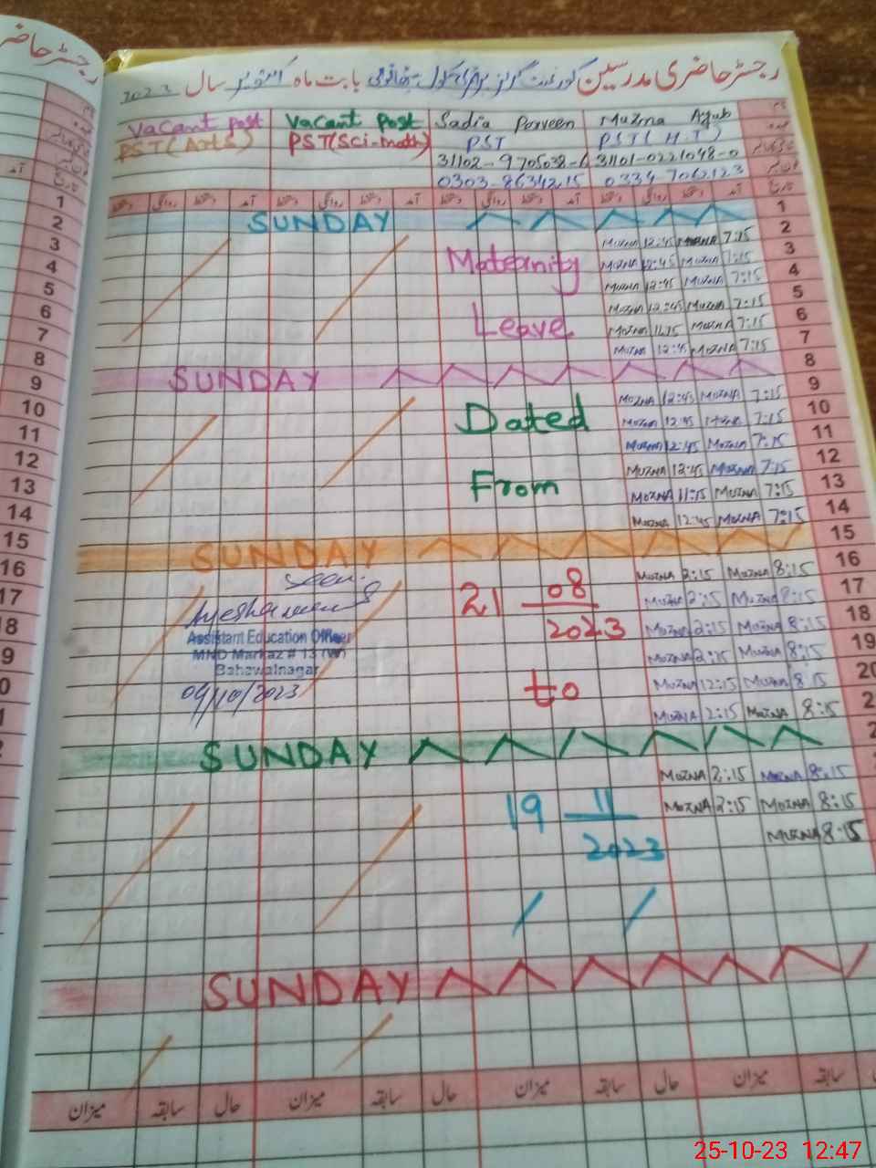 | Name: MU**** AY**** Designation: (School Headmaster's/Headmistress's) PST Phone/Cell Number: 03**** |