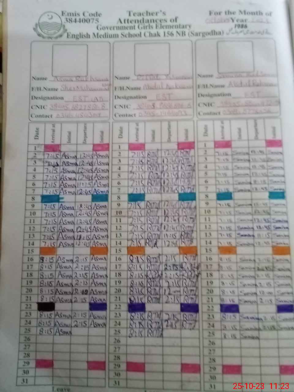 | Name: As**** Ru**** Designation: (School Headmaster's/Headmistress's) EST (AT) Phone/Cell Number: 03**** |