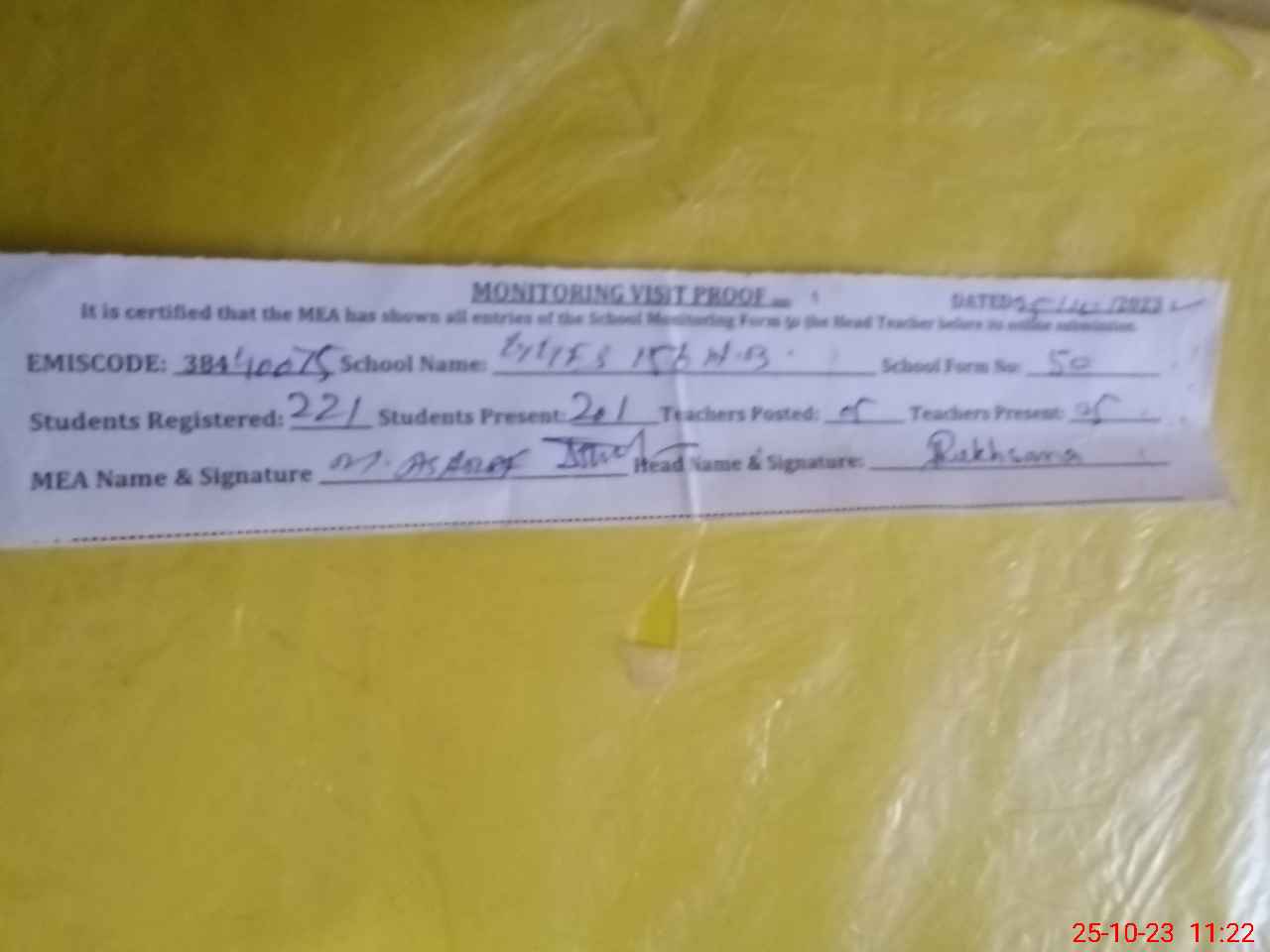 | Certified that this School was Inspected by the Undersigned MEA/DMO Today and the Information Stated Above is as Per Record. | |||||