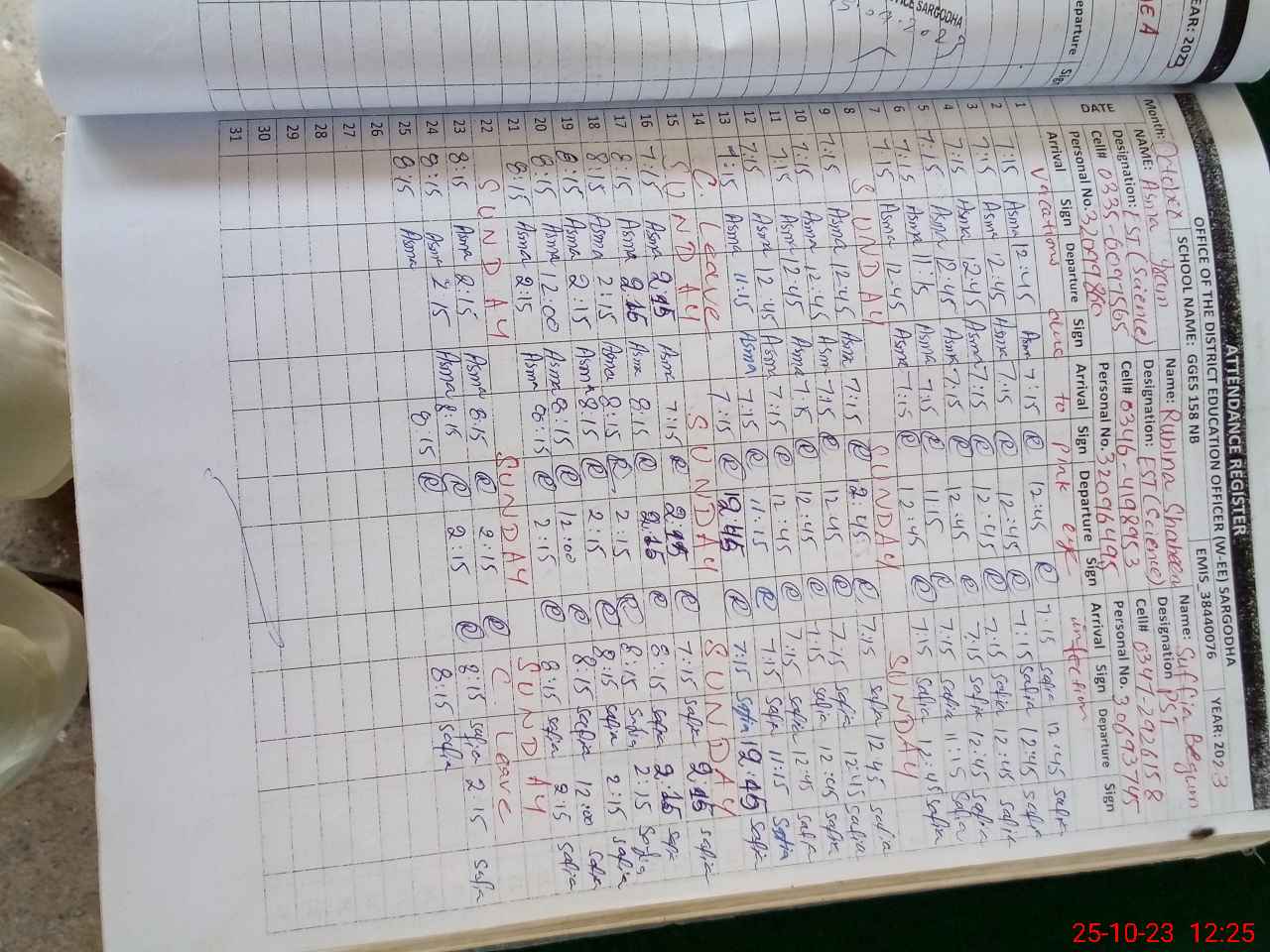 | Name: As**** Ir**** Designation: (School Headmaster's/Headmistress's) EST SCI Phone/Cell Number: 03**** |