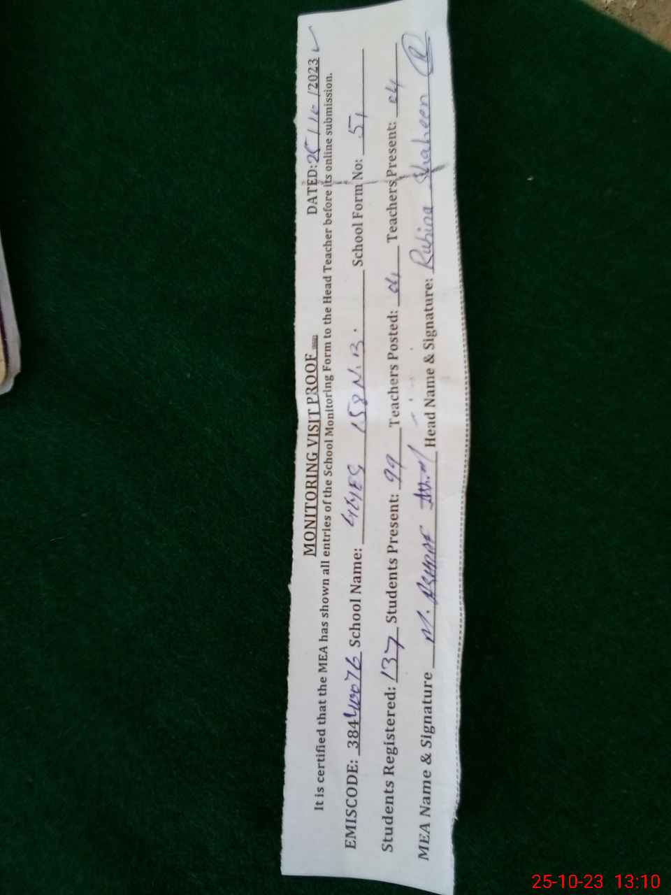 | Certified that this School was Inspected by the Undersigned MEA/DMO Today and the Information Stated Above is as Per Record. | |||||