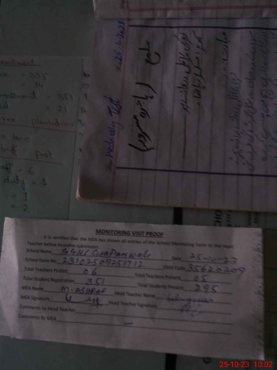 | Attendance Register | Head Teacher | MEA with School | Visit Proof |