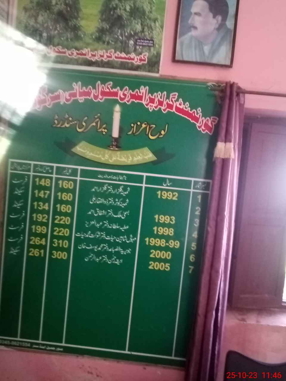| District: SARGODHA | Tehsil: BHERA | Markaz: MIANI - FEMALE | Level: Primary | |