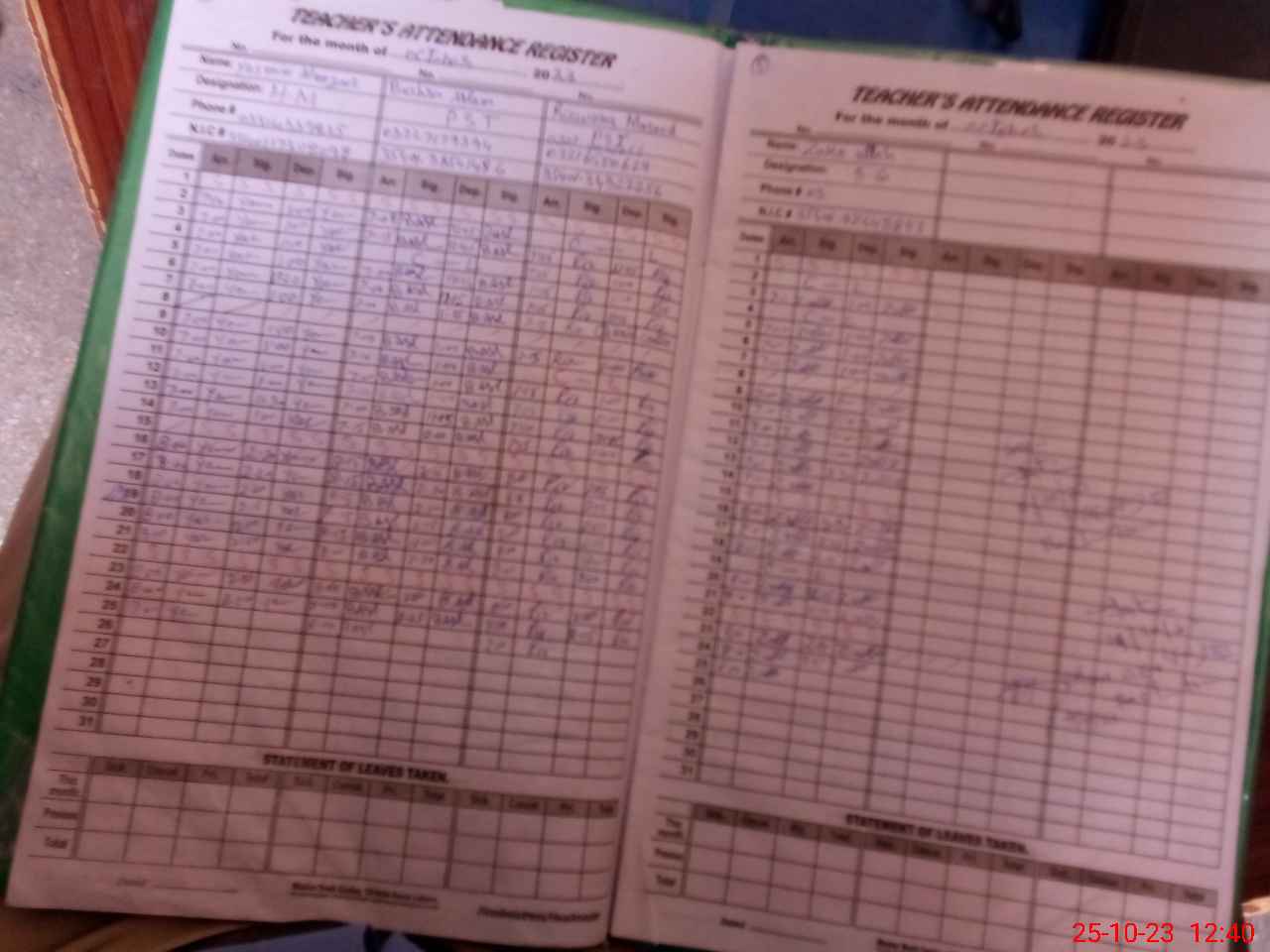 | CNIC | Full Name | Designation | R/C | Absence During Last Calender Month |