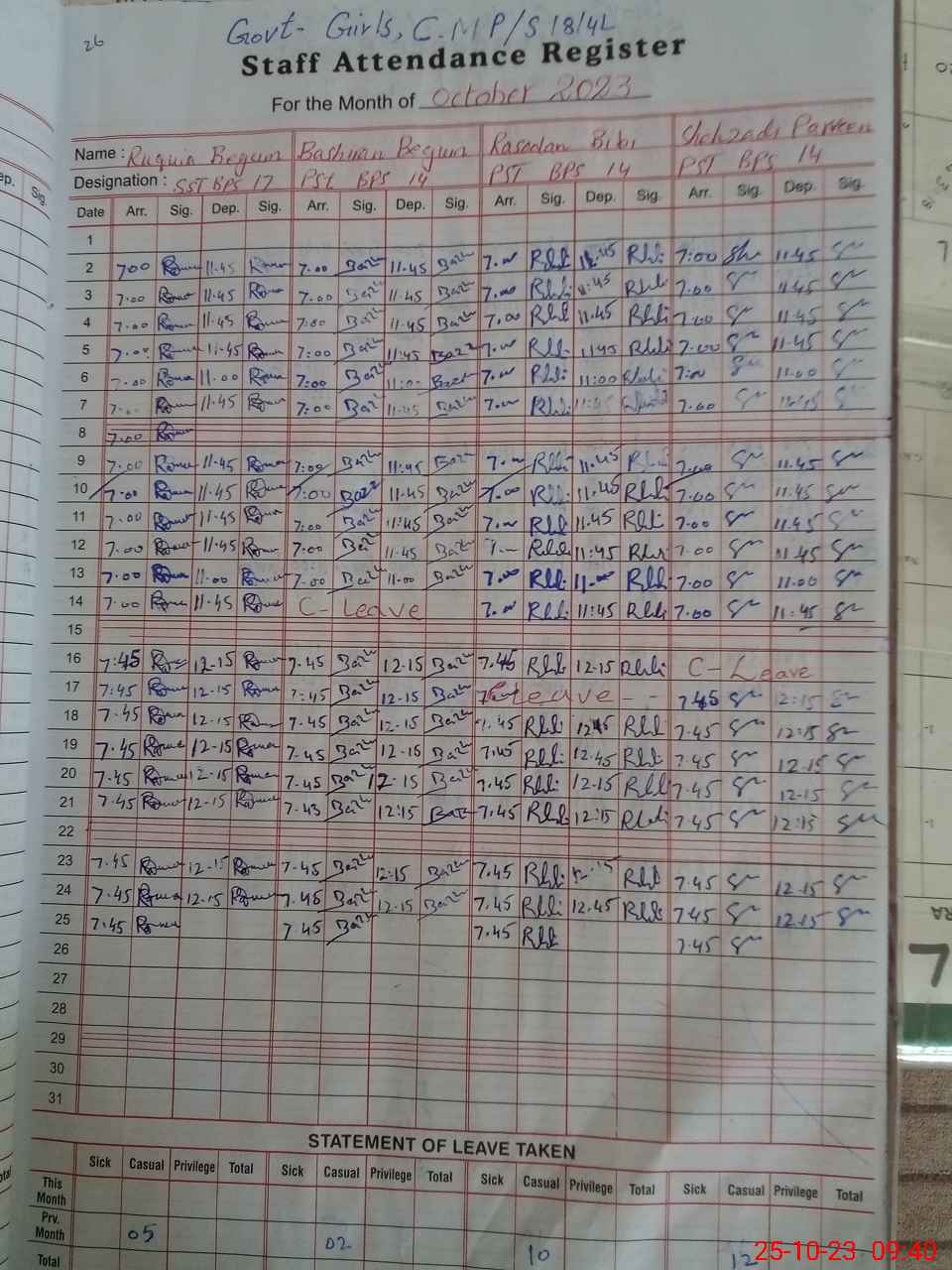 | Name: RU**** BE**** Designation: (School Headmaster's/Headmistress's) S.S.T.(Arts) Phone/Cell Number: 03**** |