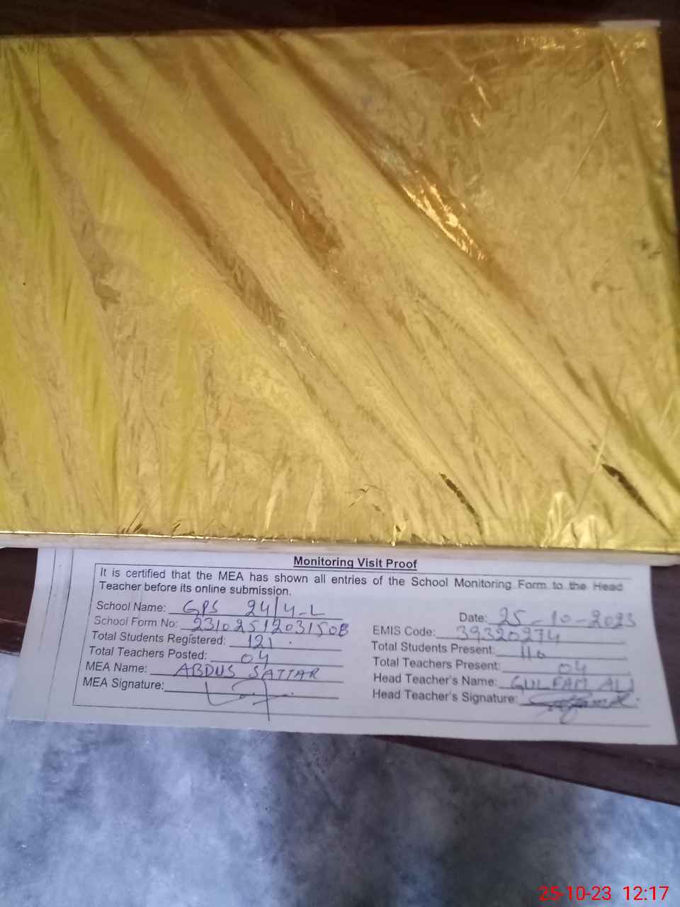 | EMIS Code: 39320274 | Name of School: GPS CHAK 24/4-L | |||