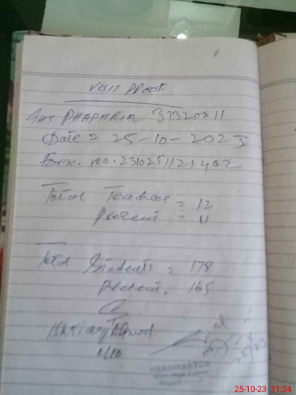 | Attendance Register | Head Teacher | MEA with School | Visit Proof |