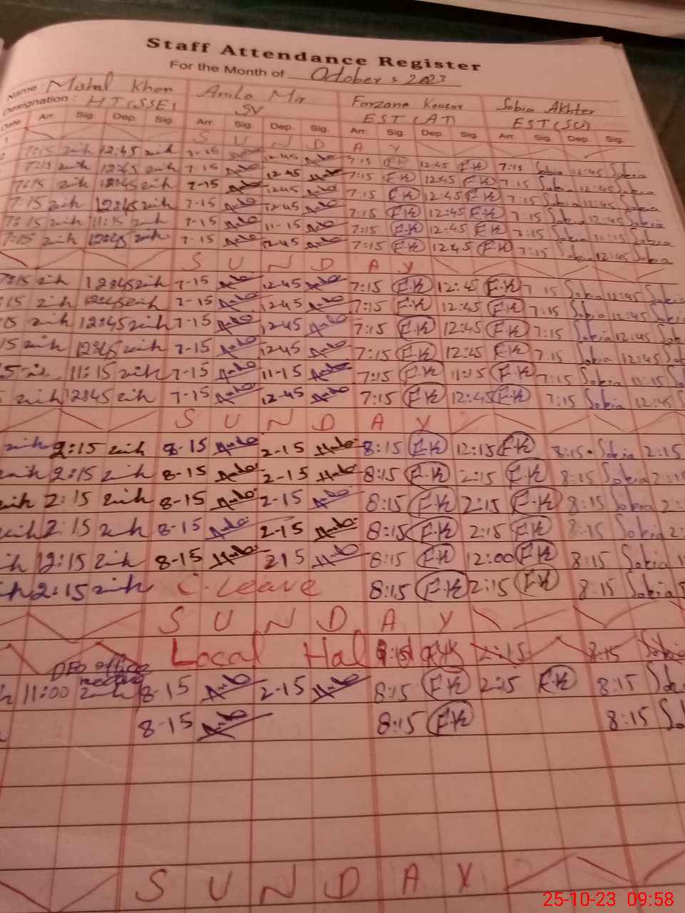 | CNIC | Full Name | Designation | R/C | Absence During Last Calender Month |