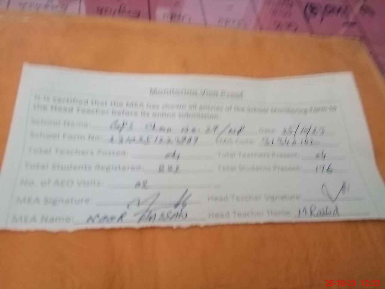 | Certified that this School was Inspected by the Undersigned MEA/DMO Today and the Information Stated Above is as Per Record. | |||||