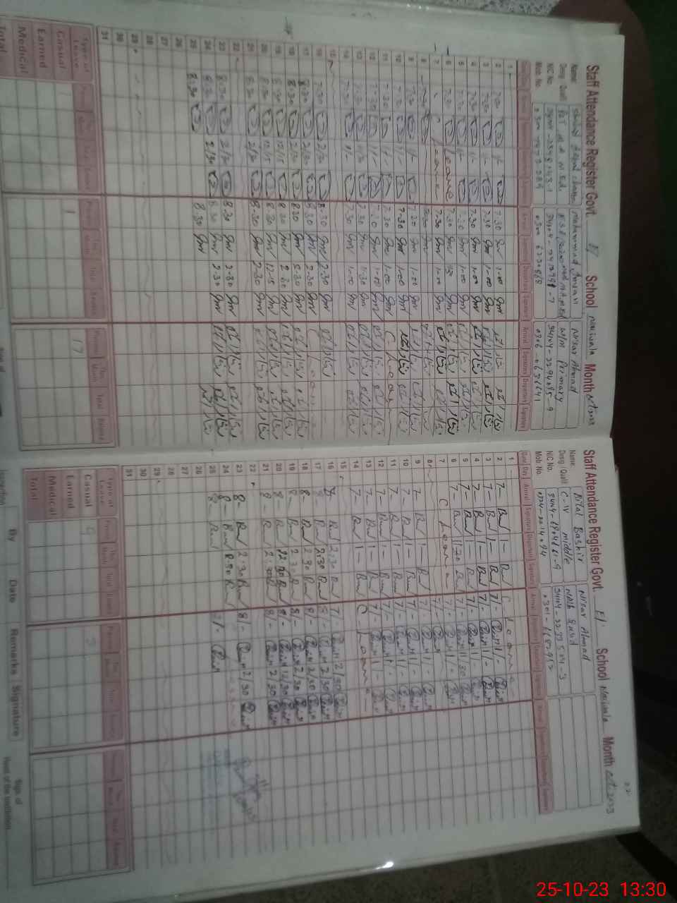 | Remarks (Use Separate Page if Required): Double entry of 01 teacher namely Muhammad Asghar est is in detailed of absent teachers page | |||||