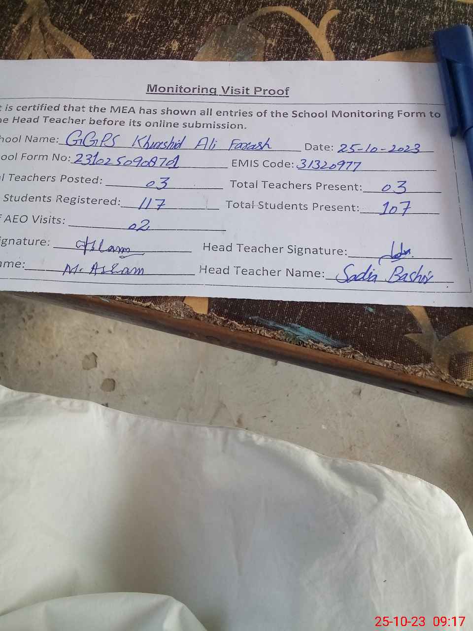 | EMIS Code: 31320977 | Name of School: GGPS KHURSHID ALI FRASH | |||