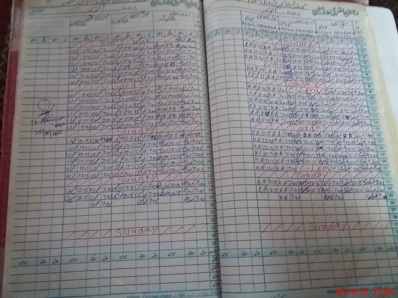 | CNIC | Full Name | Designation | R/C | Absence During Last Calender Month |