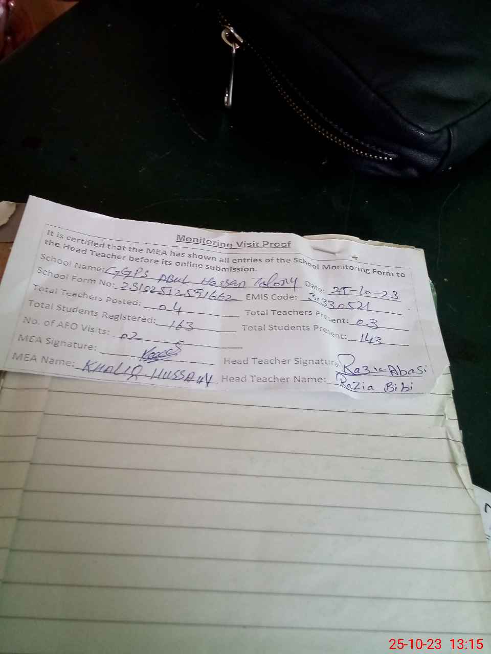 | EMIS Code: 31330521 | Name of School: GGPS ABUL HASSAN COLONY | |||