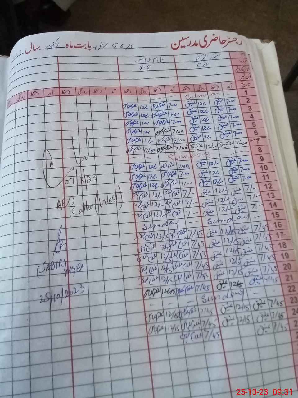 | CNIC | Full Name | Designation | R/C | Absence During Last Calender Month |