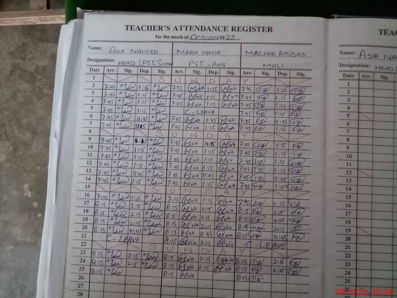 | CNIC | Full Name | Designation | R/C | Absence During Last Calender Month |