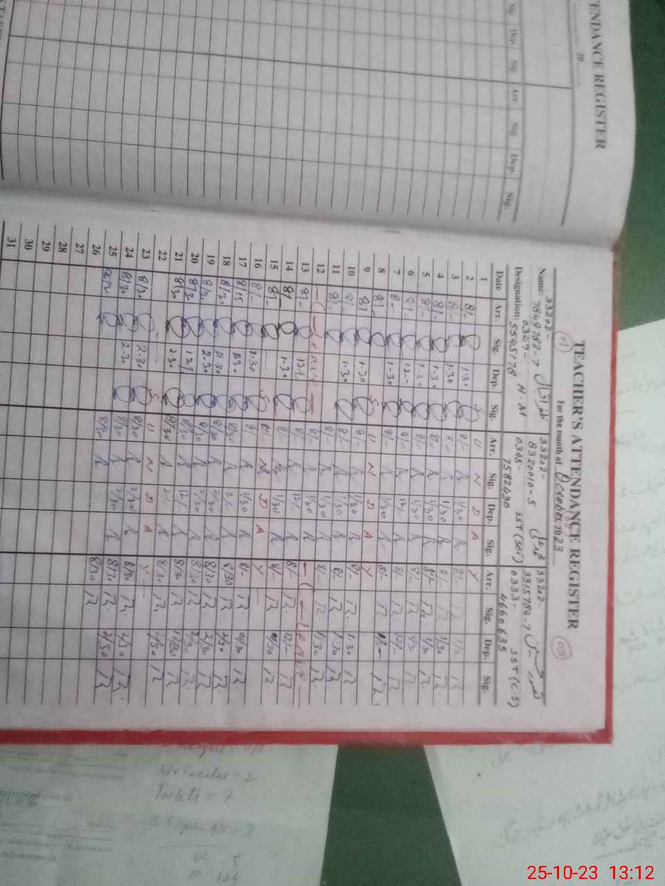 | CNIC | Full Name | Designation | R/C | Absence during last cal. month |