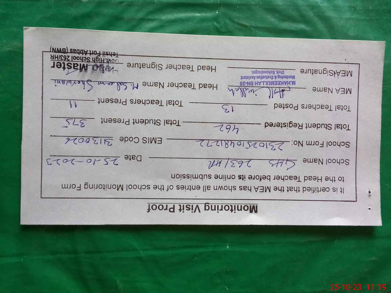 | Monitoring Date: 25-10-2023 | Start Time: 25-10-2023 10:32 AM | End Time: 25-10-2023 11:23 AM | Name of MEA: Mu**** ha**** ul**** BN25 | |