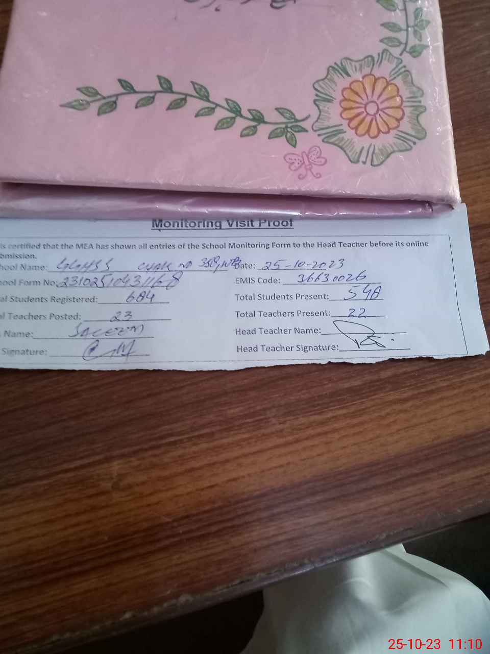 | Certified that this School was Inspected by the Undersigned MEA/DMO Today and the Information Stated Above is as Per Record. | |||||