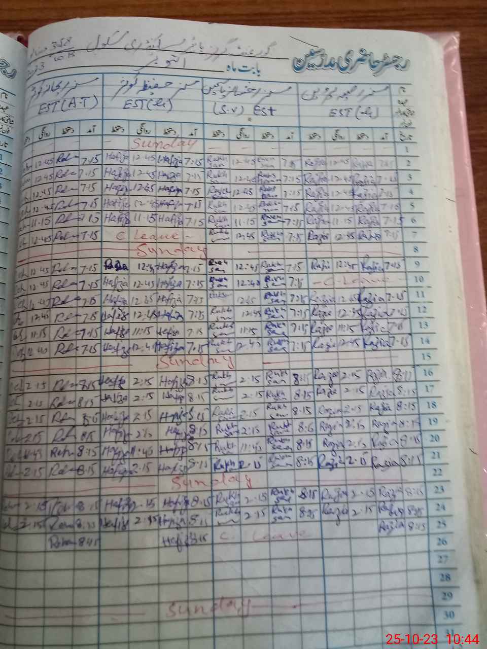 | 36**** | As**** No**** | 1 | 2 | 0 | 0 | 0 | 0 | 0 | 0 | 0 | 2 | Exam Duty | |