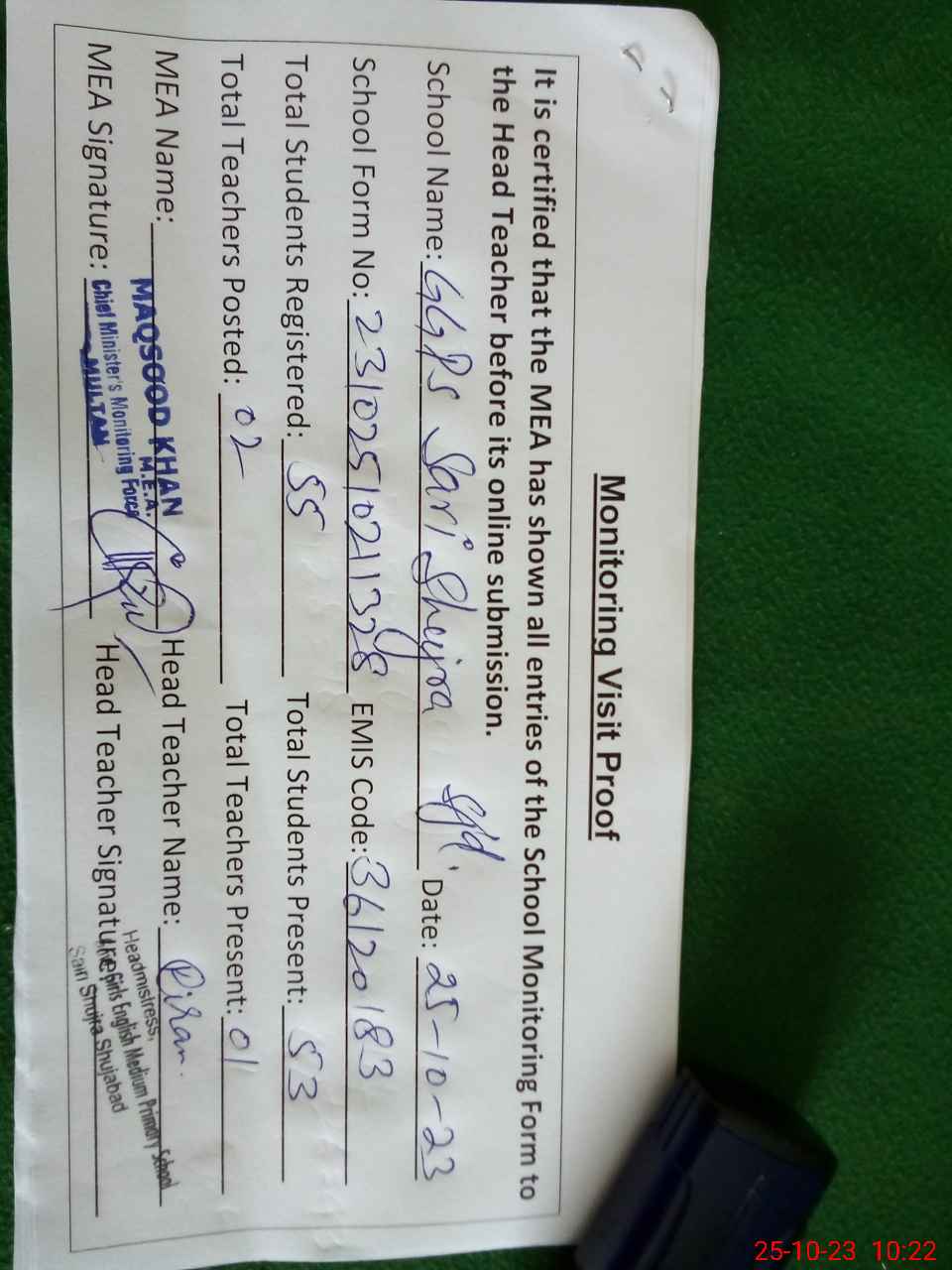 | EMIS Code: 36120183 | Name of School: GGPS SARI SHUJRA JALALPUR KHAKHI | |||