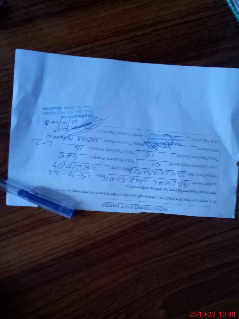 | Monitoring Date: 25-10-2023 | Start Time: 25-10-2023 12:57 PM | End Time: 25-10-2023 01:41 PM | Name of MEA: RA**** HA**** | |